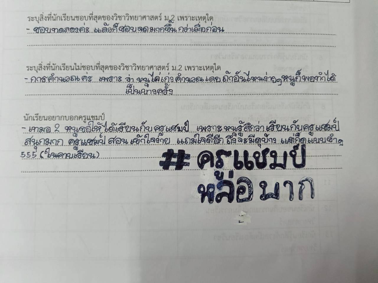 ความคิดเห็นของนักเรียนที่มีต่อครูแชมป์
